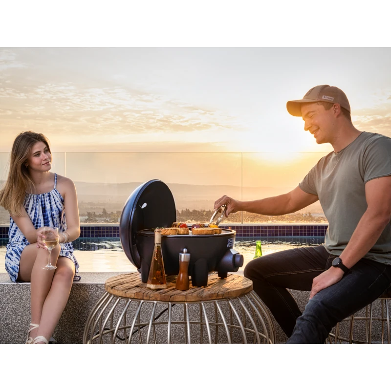 Discover the taste & comfort of electric grilling with CADAC’s new E Braai. This electric BBQ is perfect for use on a balcony or in a garden, but it’s also easy to transport during holidays with the included carry bag. The 2.3kW heat coil ensures quick heat up time.