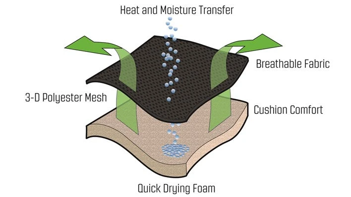 - Fabric Textiline, 3D mesh with quick-dry foam, 100% polyester