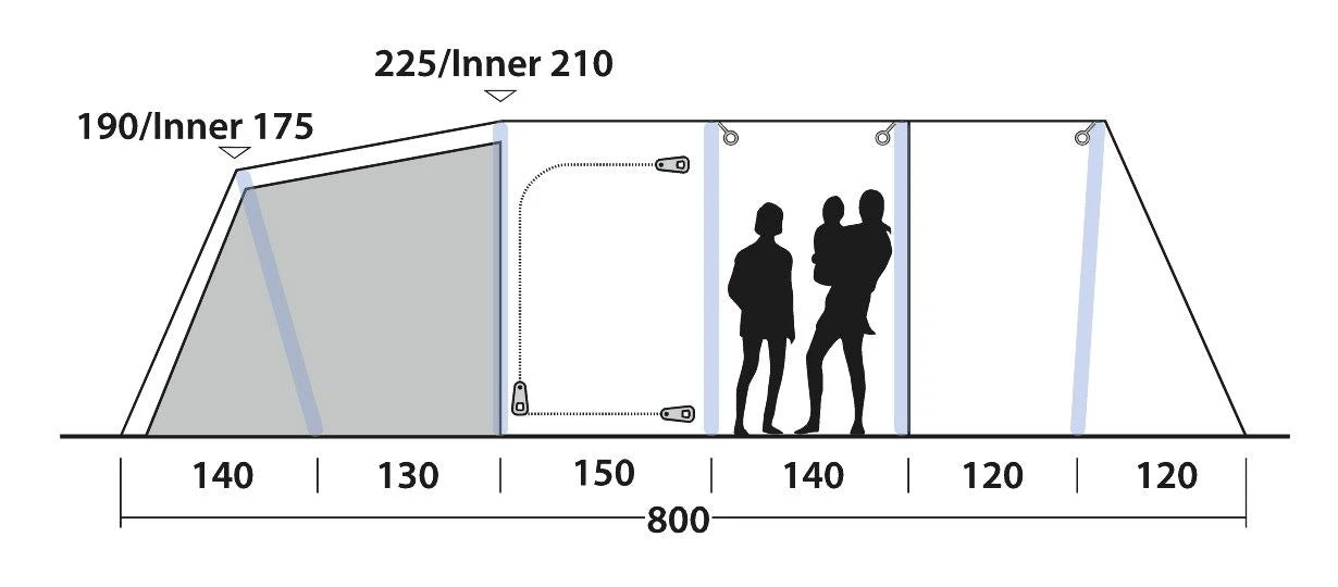 You’ll enjoy luxury camping with the Outwell Knoxville 7SA air tent. Featuring innovative Outtex 6000 RS Endurance fabric with superior tear strength and resistance to rips, this very large three-zone tent delivers plenty of space in both the living area and wet zone for comfortable tent living. Packed with innovative features for home from home comfort, it’s a great design for longer holidays. Sleeping seven in three superbly ventilated bedroom inners, it’s ideal for large families or camping with friends whilst the spacious, light-filled living area offers ample room for tent life, board games and dining. The large Panorama front ensures you stay connected with nature and the great outdoors.