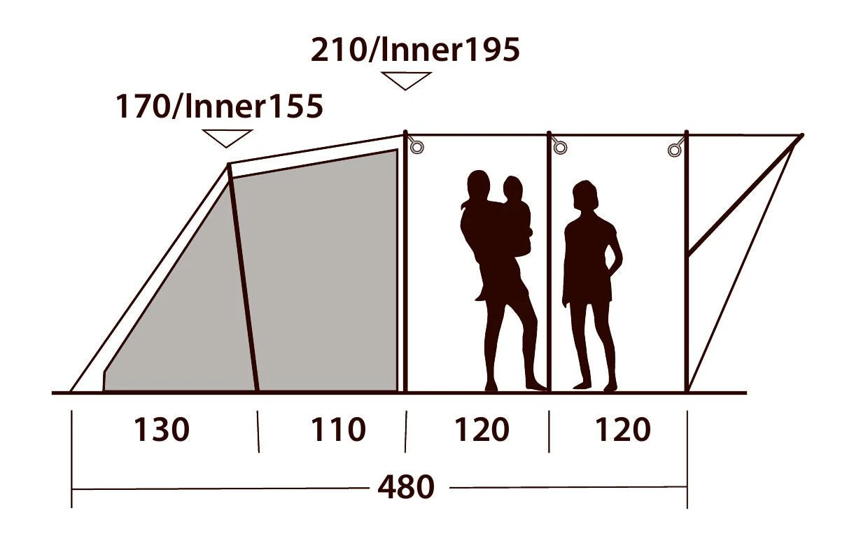 - Type of tent: Four room tunnel tent