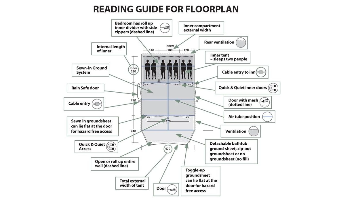 - Premier Bedrooms offer more space and help to make pitching easy; Cable Entry points to inners for mains access