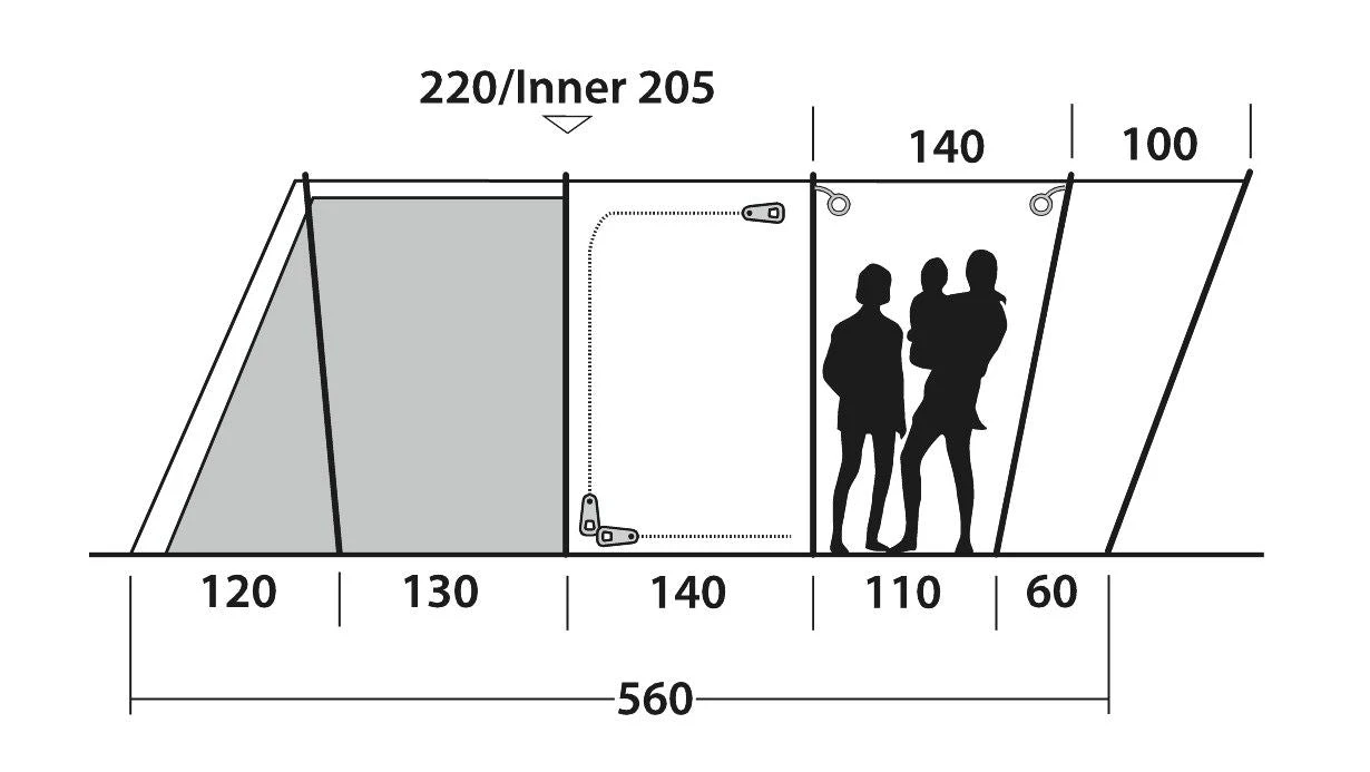Sleeping six in two Ambassador Master Bedrooms featuring Dark Inners and Quick & Quiet Inner Doors, the Montana 6PE offers generous tent living space. Twin side doors, one with a deep porch, ensure versatile access and extend ventilation options. Pre-bent poles deliver superb stability, steep walls to maximise internal space and full headroom throughout. With the Outwell HookTrack System, Easy Pegging System, Cable Entry, zip-up curtains and Rear Ventilation System, home from home comfort and convenience is assured.